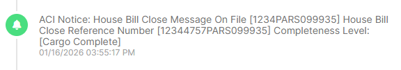 - Indicates that the freight forwarder has submitted a house bill and it has successfully linked to the ACI shipment.