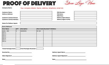 Proof of Delivery document example.